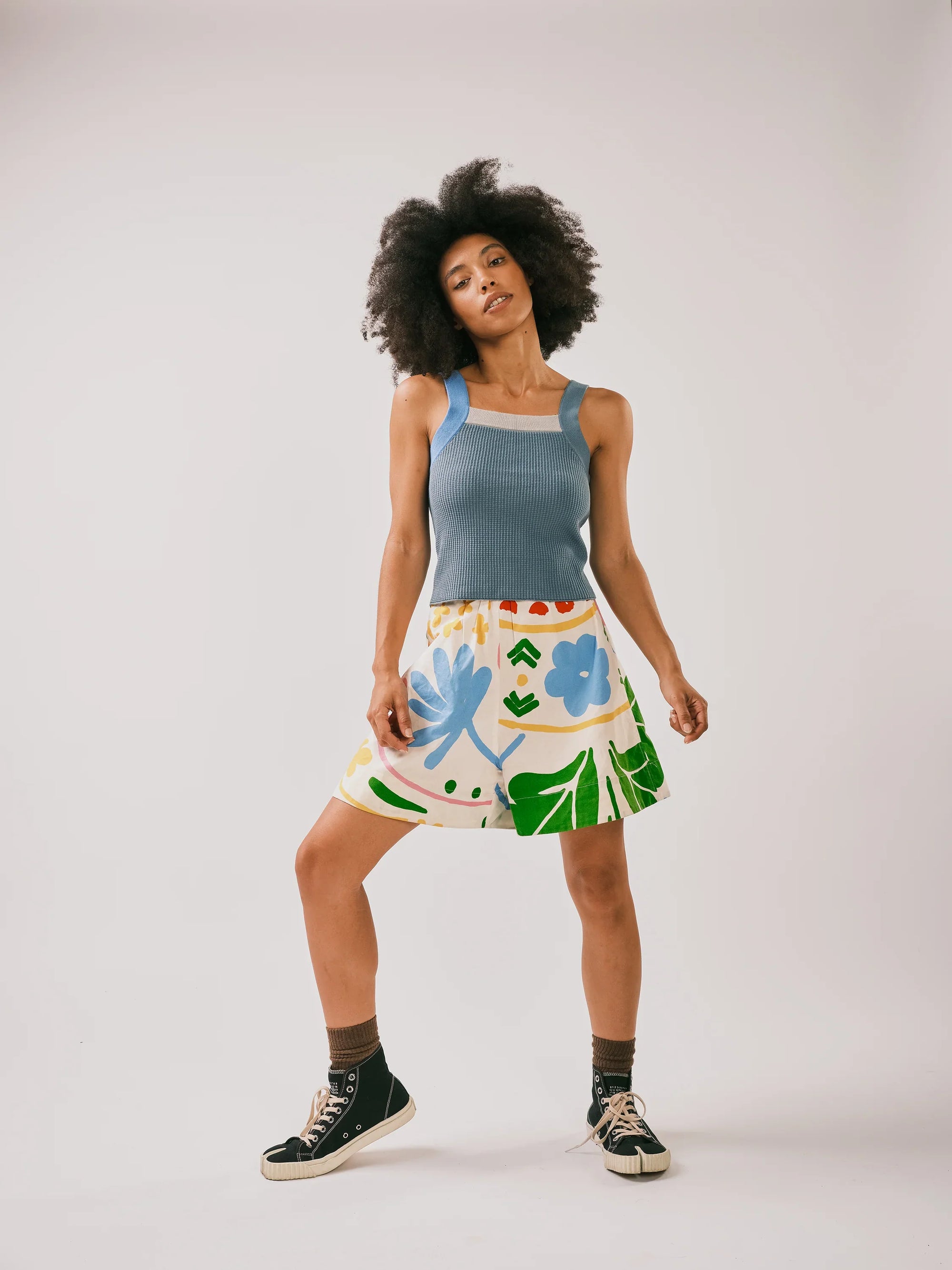 An easy to wear staple made in 100% Pima cotton. The body features an interesting variation on a waffle stitch which keeps the garment close to your body. The garment is a RTW version of our most popular summer handknitting pattern, the Think Tank.