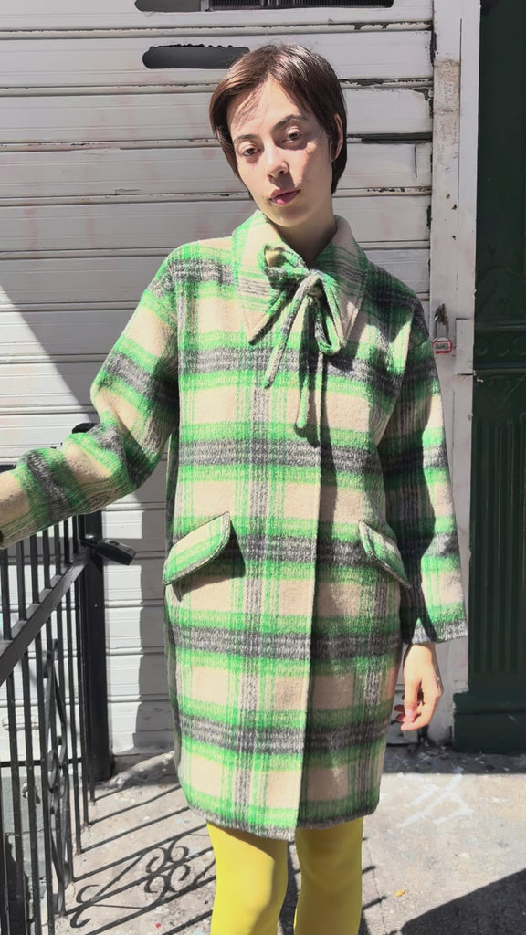 Introducing the Chelsea Coat: This medium-length trench coat is the perfect, cozy addition to your fall rotation. With its fuzzy texture, bow detail, and classic silhouette, it'll quickly become a staple in your closet.