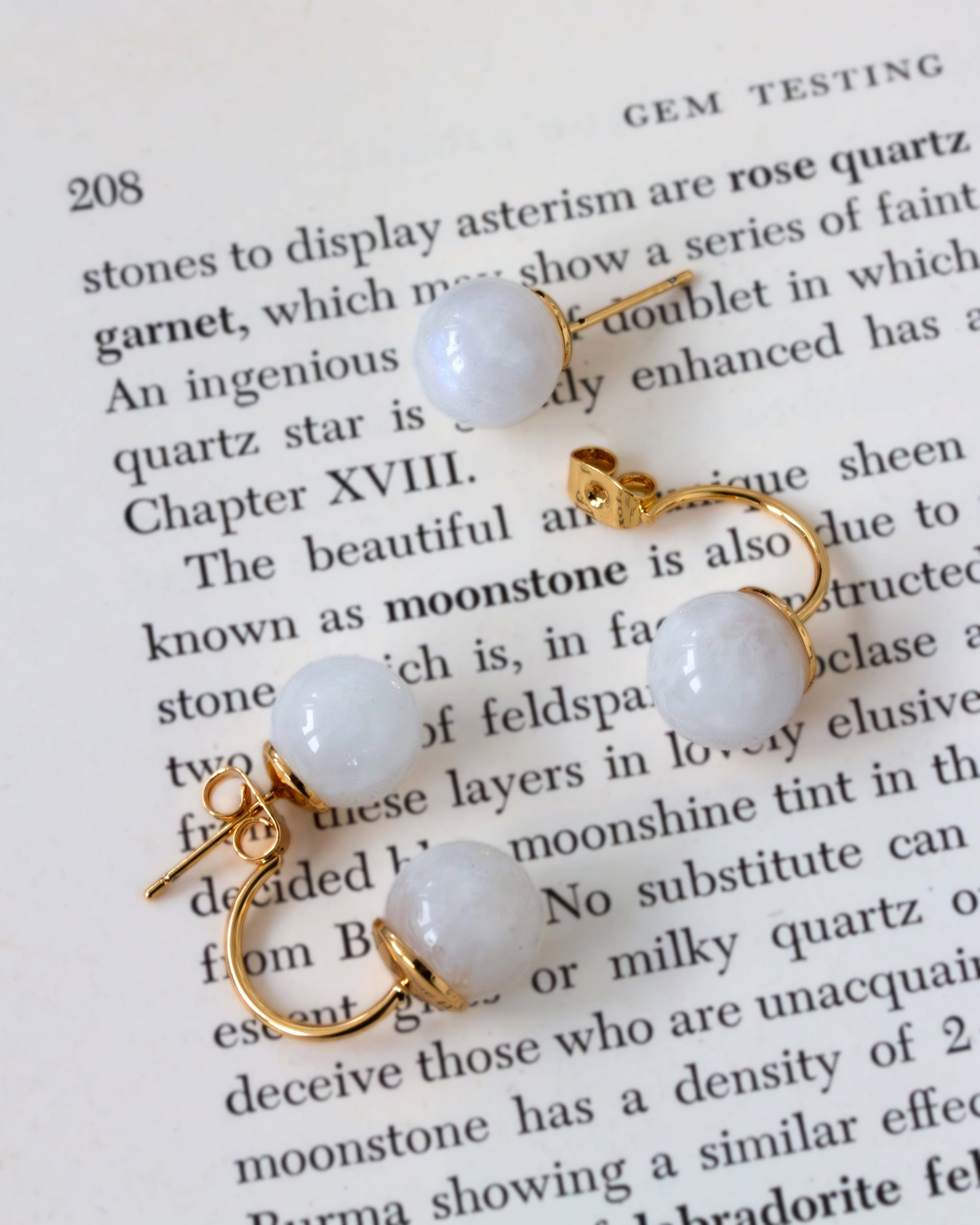 These unique earrings capture the celestial beauty of Mars' two moons, orbiting your ears in style. With this versatile design, you can combine the genuine stone ear jacket with a post earring for a singular look or wear them separately with other post pairs you might own. The combined galactic and stylish elements make these earrings ideal for the trend setting gemstone lover! Comfort was on our minds when we designed these earrings because we know that true style doesn't have to be uncomfortable.