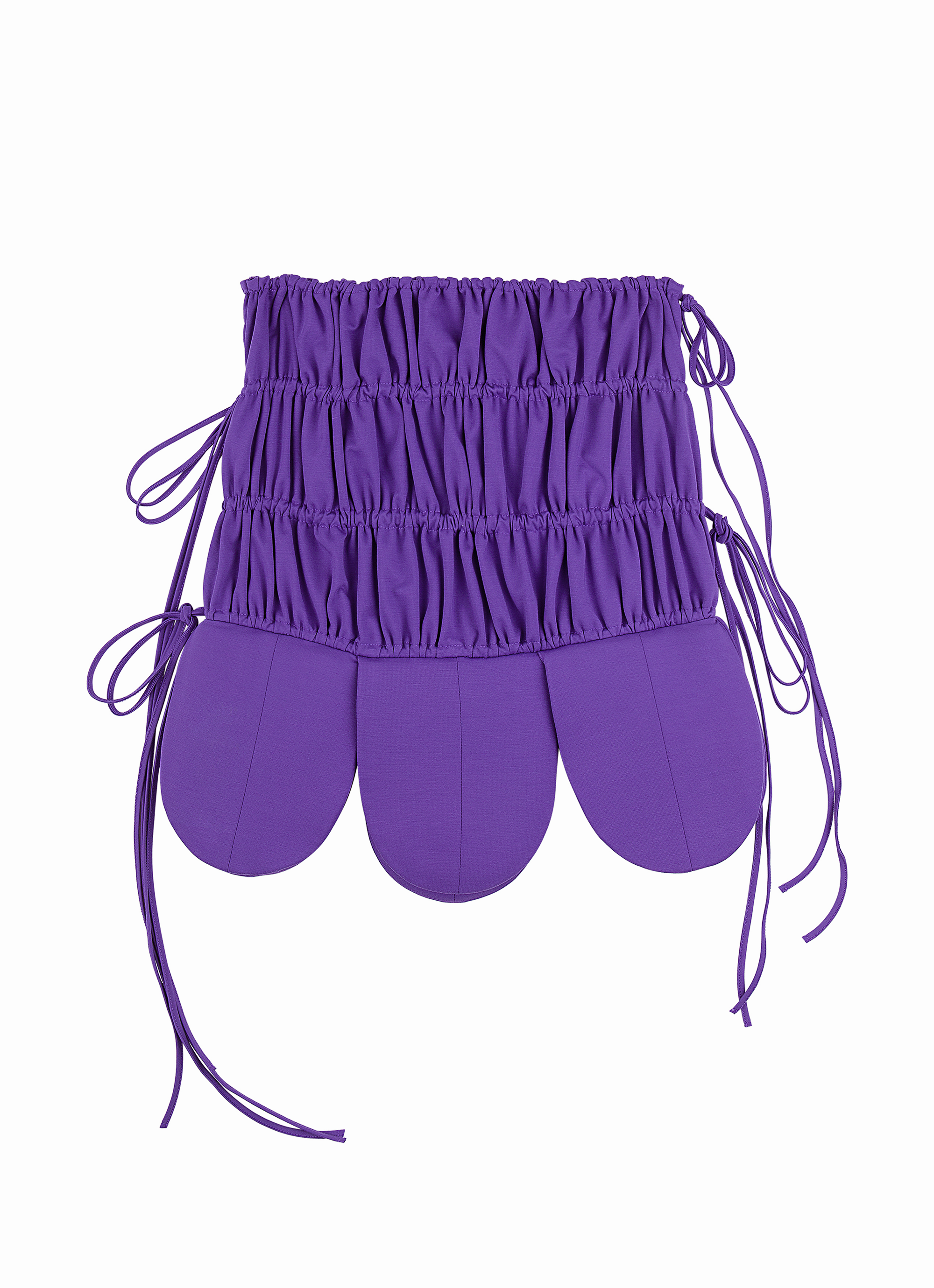 Made from soft and puffy jersey, this plush skirt brings a touch of nature's elegance to your wardrobe. Ruched with an abundance of ties, with its squishy petals beneath. 55% Rayon